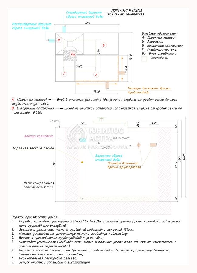• готовый к эксплуатации Септик Астра 20 передается заказчику в полностью готовом к эксплуатации состоянии.